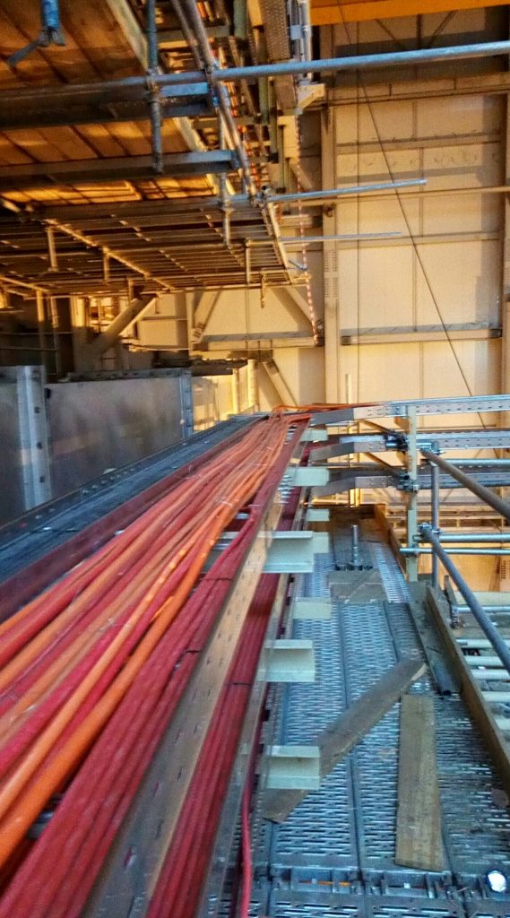 Наш строительный отряд прокладывал кабели на всём заводе. Прочёсывали (распутывали), маркировали стяжками и бирками, тянули (по одному, так как тяжёлые), укладывали в металлический лоток.